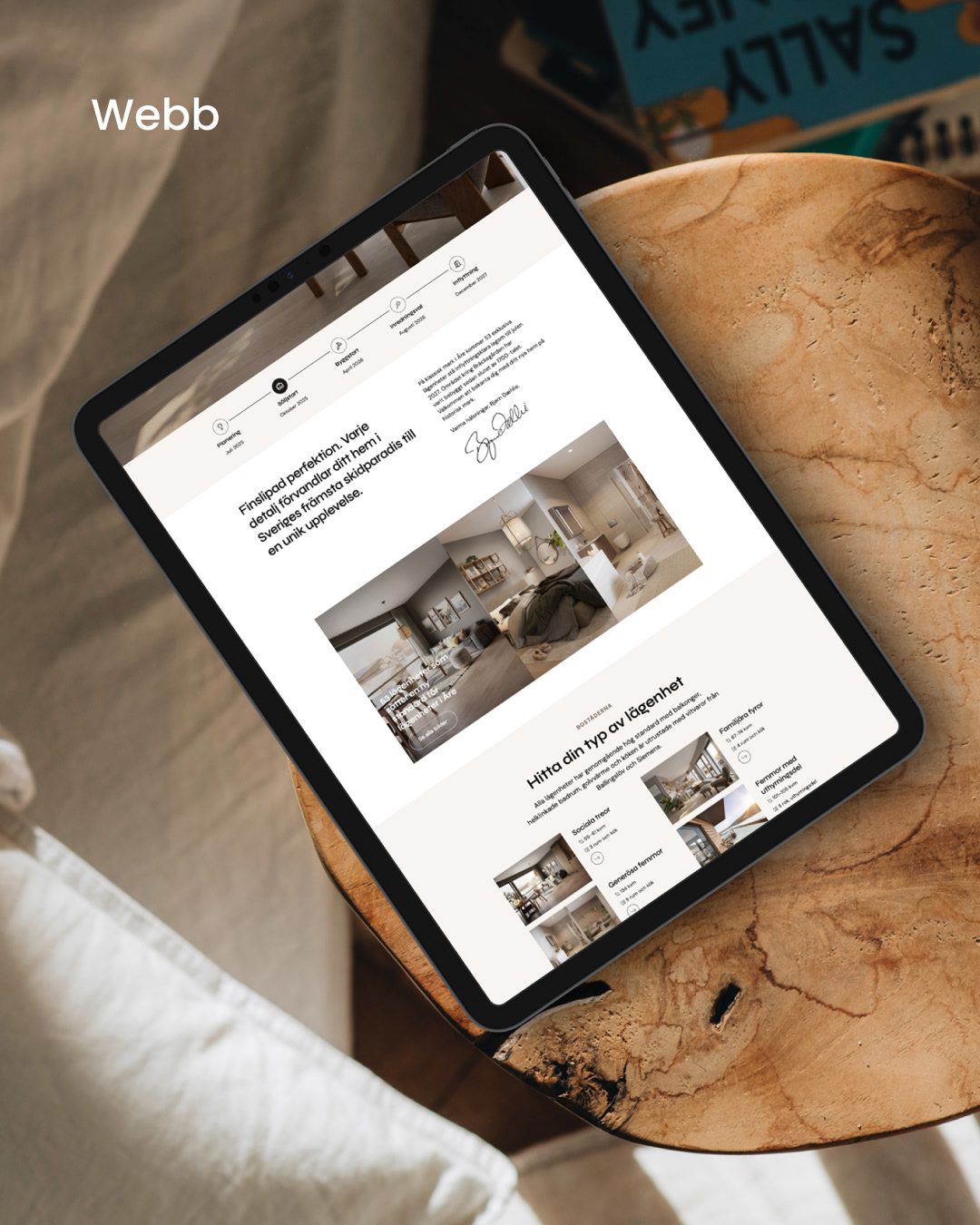 Studio 3D ansvarade för visualiseringar och bostadsväljare, medan vi tog ansvar för logotyp, grafisk profil, design, textproduktion och utveckling av projekthemsidan. Arbetssättet präglades av korta och effektiva avstämningar, snabb återkoppling och ett starkt gemensamt fokus på att få alla delar att landa rätt i tid.