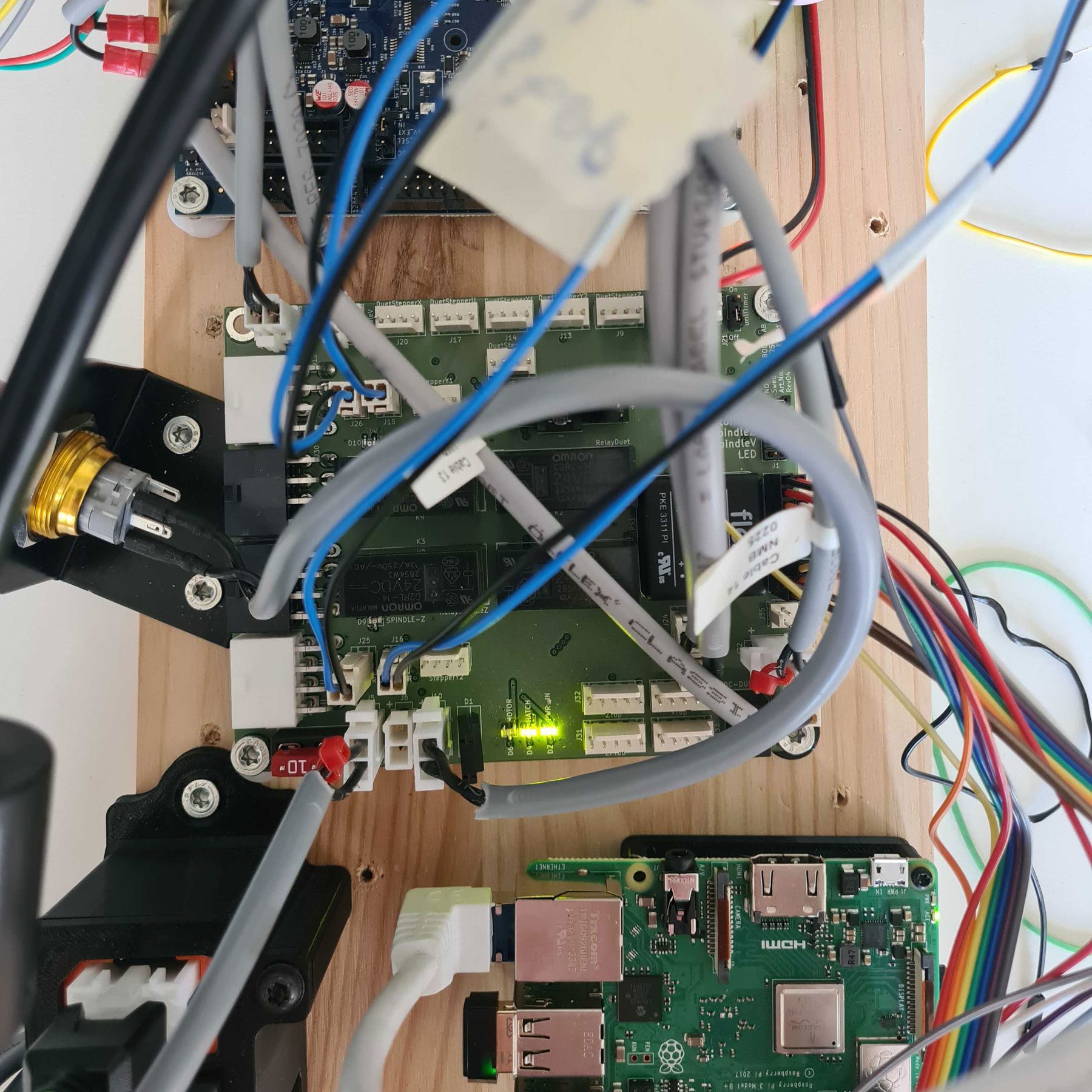 Tekniskt använde vi Raspberry Pi som microdator, PI-Gen för att skapa ett bootbart operativsystem, Duet3D styrkort för att styra maskinens komponenter, Python för backend server och GCODE generering, samt Vue för frontendutveckling.